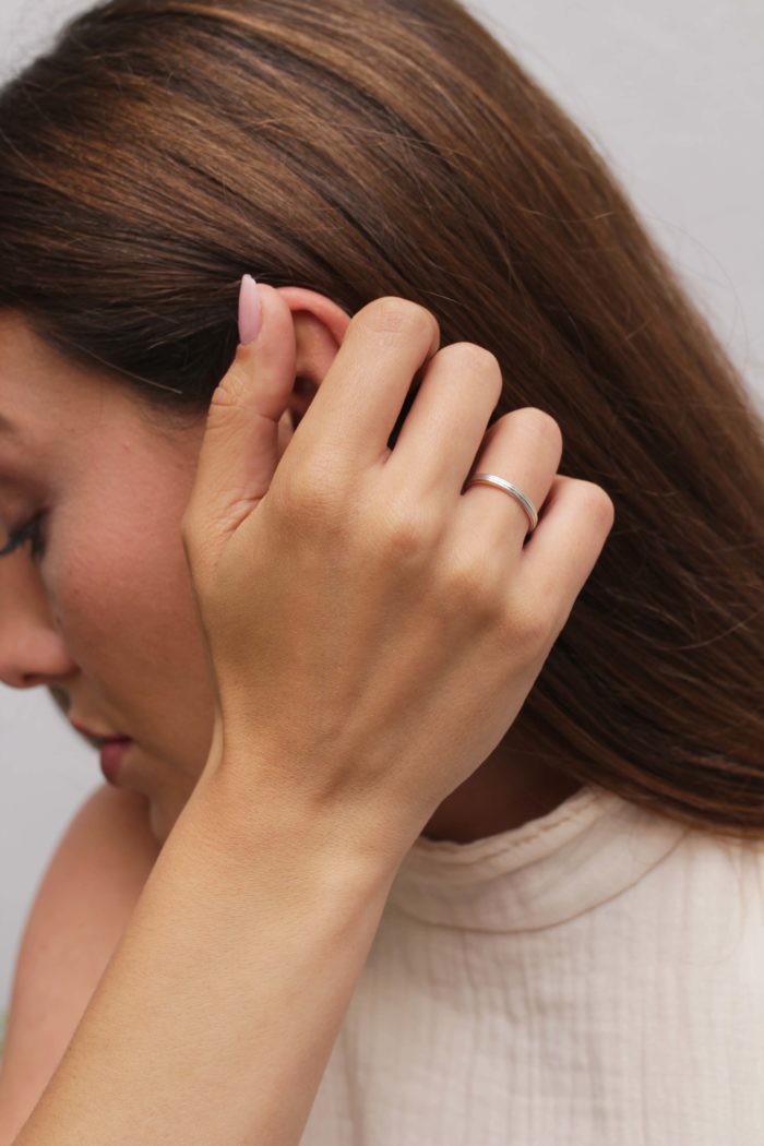 Anillo fino de plata de ley diseñado y hecho a mano. Este anillo es abierto y se adapta desde la talla 10 a la 14-15 aproximadamente.