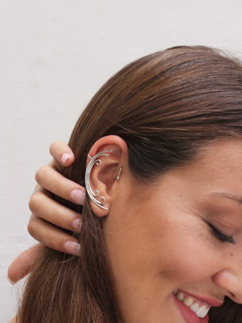 Ear cuff en plata de ley diseñado y hecho a mano. Puede colocarse en ambas orejas y es adaptable.
